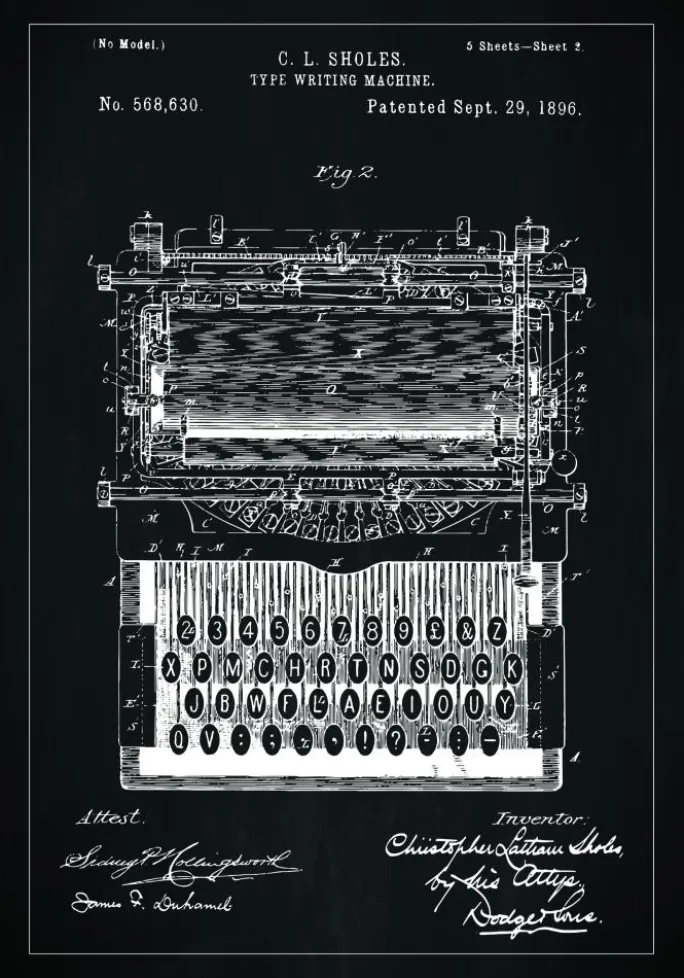 Dette stykke patentkunst er en hyldest til teknologiske fremskridt og innovationens gry i skriveteknikken og repræsenterer en tid, hvor hver tast var en trin på vejen mod moderne kommunikation. Ideel til vintage-entusiaster, samlere af antik teknologi eller de, der værdsætter historiske fremskridt inden for design og teknologi, vil denne patentplakat være en samtalevækkende og inspirerende indretningsdetalje.