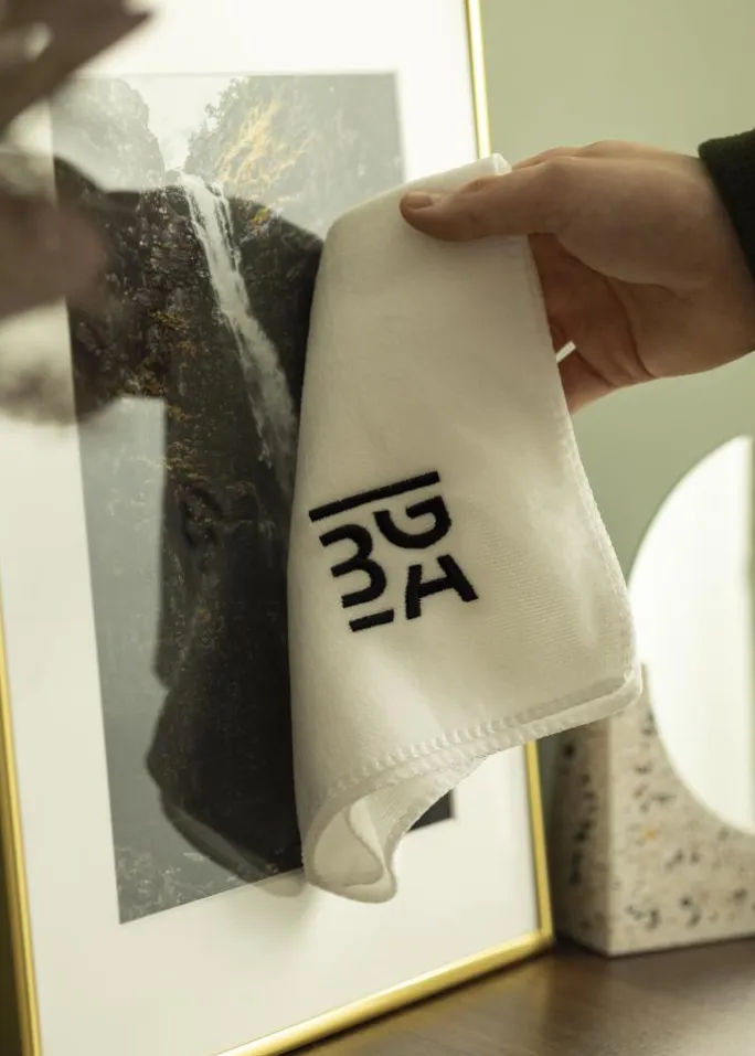 Perfekt når du helt enkelt vil have pletter og fingeraftryk af fra glasset på dine rammer og spejle. De kan også bruges på refleksfrit glas da pudsekluden er produceret af Groglass som oven i købet laver vores refleksfrie glas.