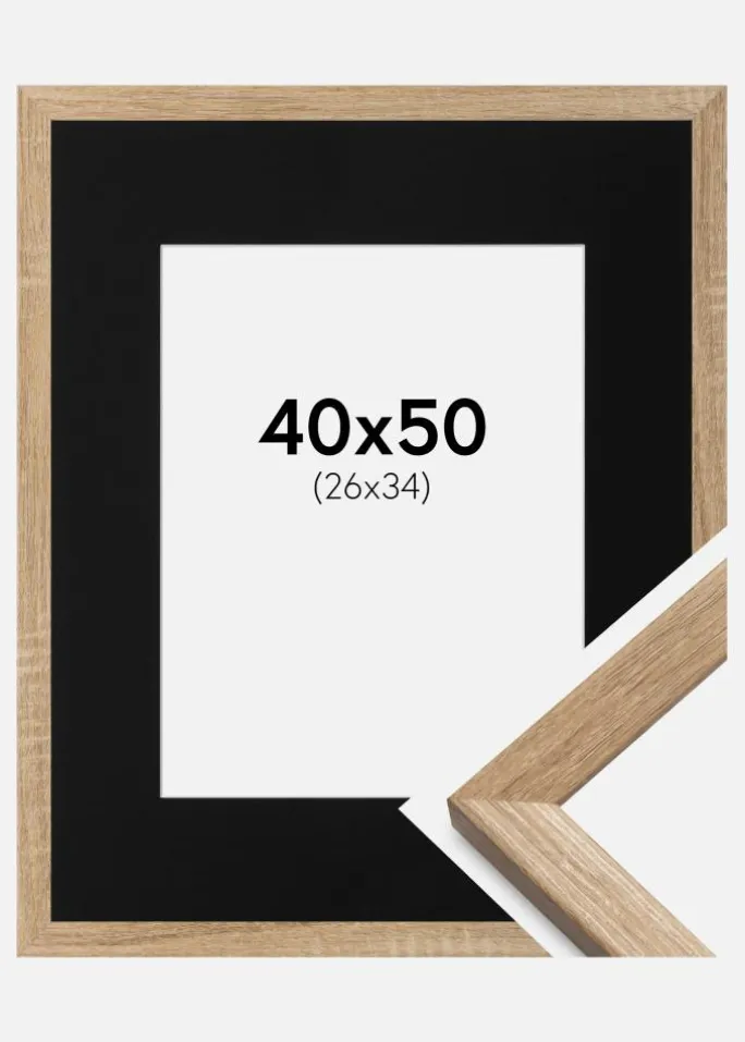 Ramme Fiorito Lys Eg 40×50 cm – Passepartout Sort 27×35 cm