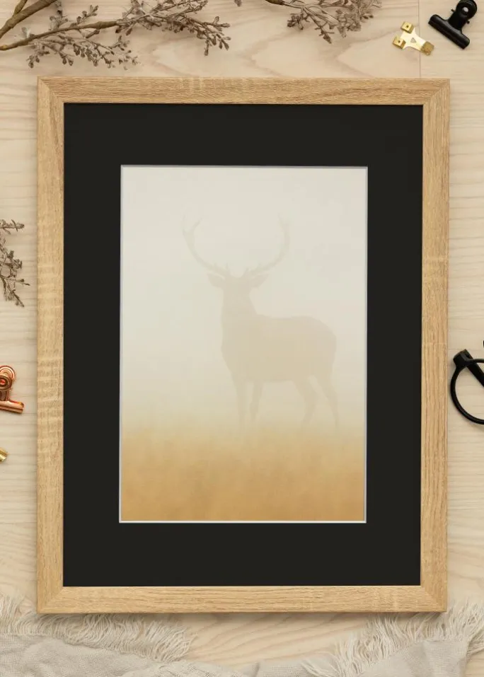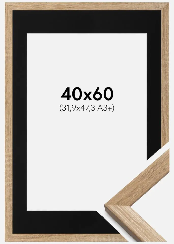 Ramme Fiorito Lys Eg 40×60 cm – Passepartout Sort 32,9×48,3 cm (A3+)
