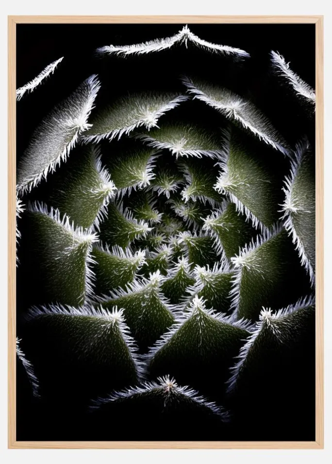 Et makrofoto af en Sempervivum-roset. Nærbilledet af denne plante viser rosetten af dybgrønne blade, der hver især er behængt med små hvide pigge. Detaljerne er utrolige og vil få alle til at stoppe op ved dette fantastiske foto.