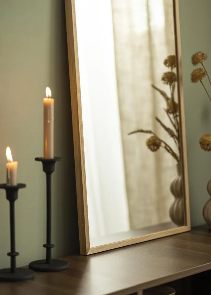 - Vægspejl med træramme