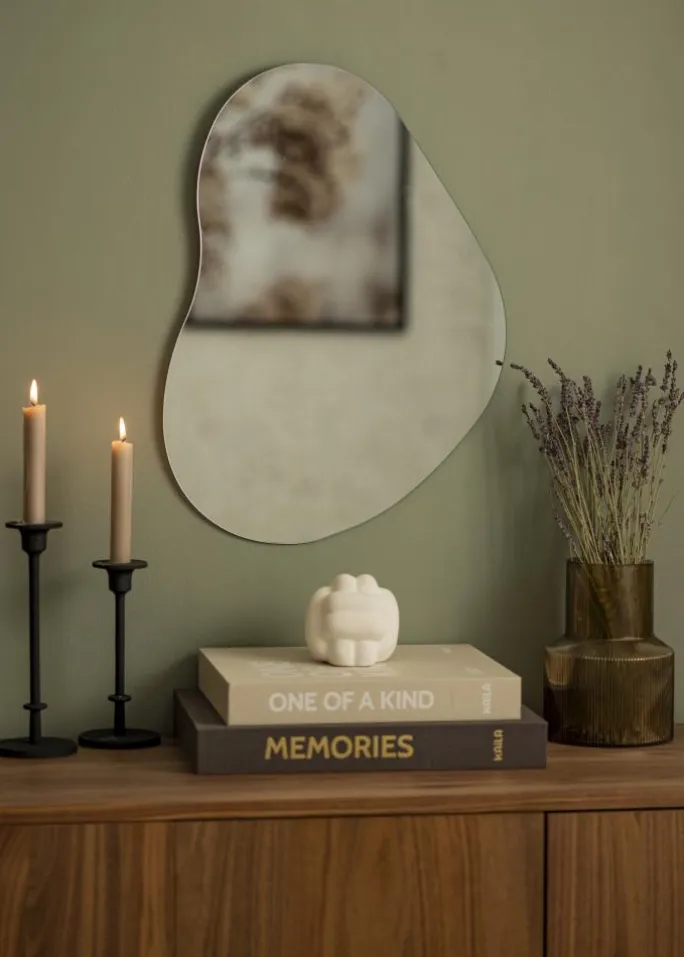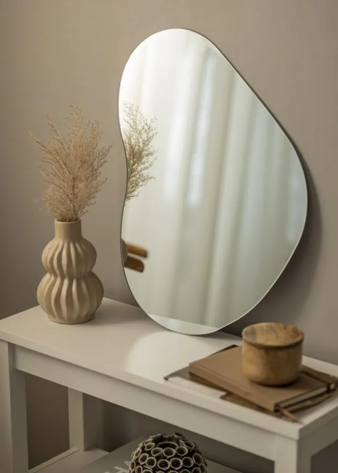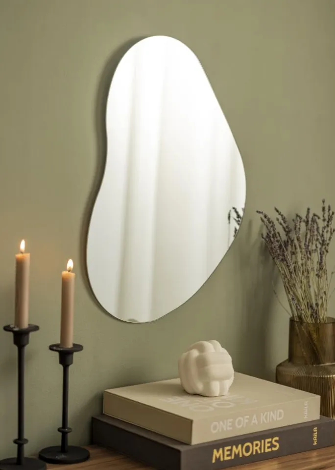 Mellow Cloud er spejlet for dig, der ønsker et neutralt spejl i en smuk form. Den elegante spejl på 40×55 cm har tyndt spejlglass og en elegant bølgende form. Den stilrene og fine fornemmelse forstærkes yderligere af, at spejlet ikke har nogen ramme. På bagsiden findes vægbeslag.