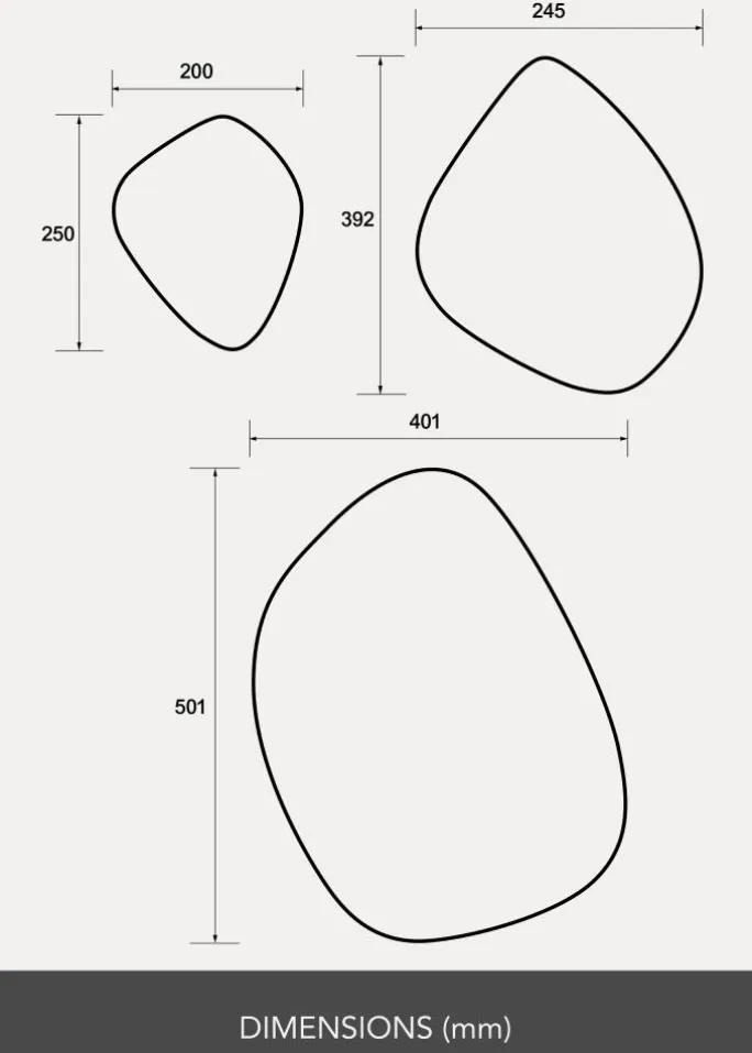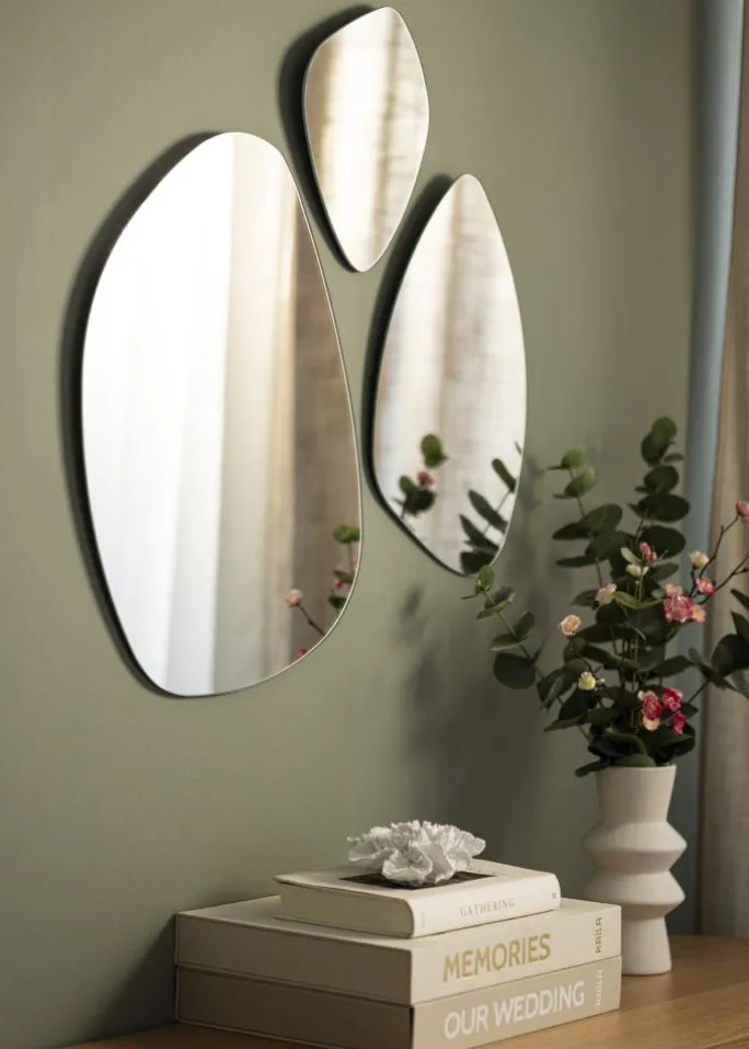 - Spejloverflade: 40×50 cm / 30×35 cm / 20×25 cm