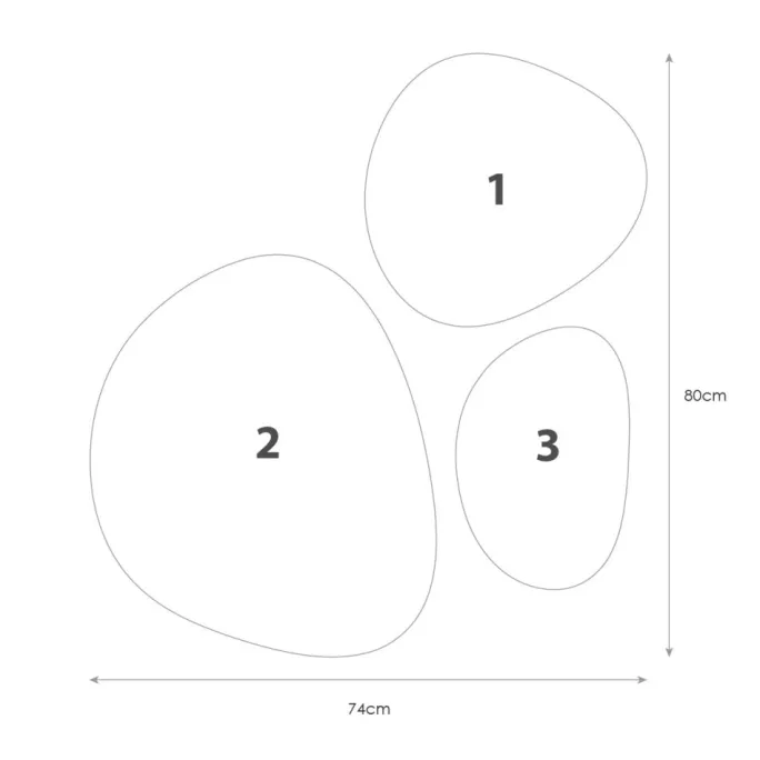 - Størrelser: 36,5×37,5 cm / 53,3×46 cm / 35×23,2 cm