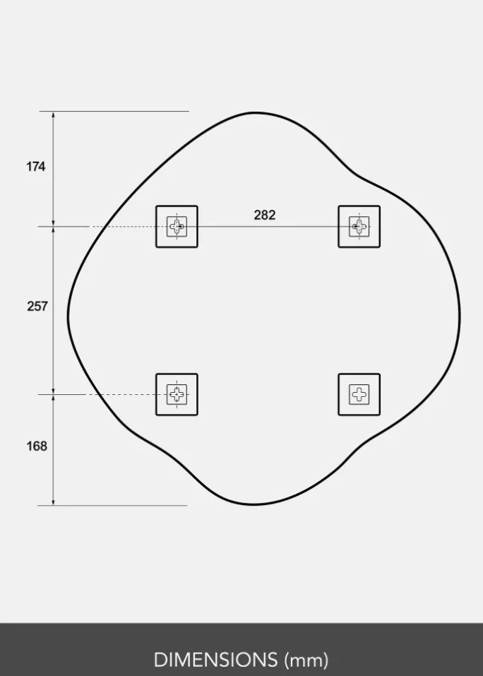- Spejloverflade: 60×60 cm