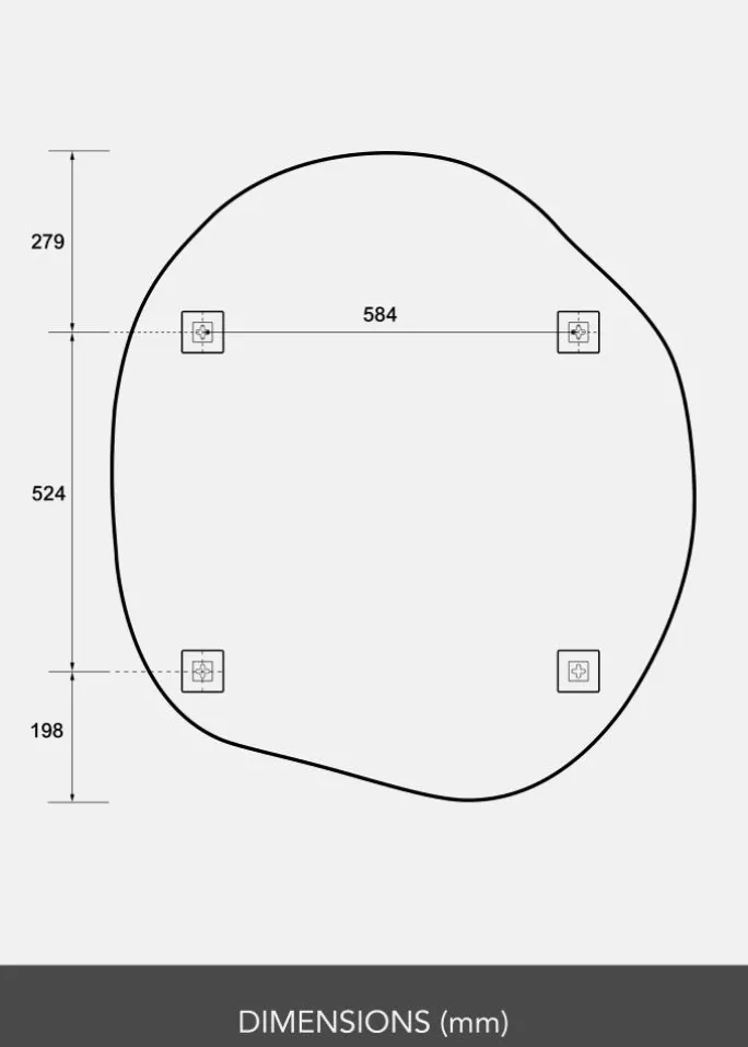 - Spejloverflade: 90×100 cm