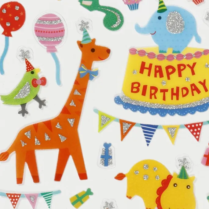 Stickers Fødselsdag er et sæt med farverige og festlige klistermærker, der passer perfekt til at dekorere lykønskningskort, fotoalbum og scrapbooking. En legesyg detalje, der gør fødselsdagsfejringen endnu mere personlig.