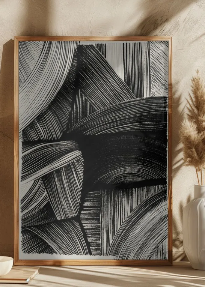 - MotivAbstrakt kunst / Sort-hvide / Grafiske / Kunstarter / Malerier / Minimalistisk kunst