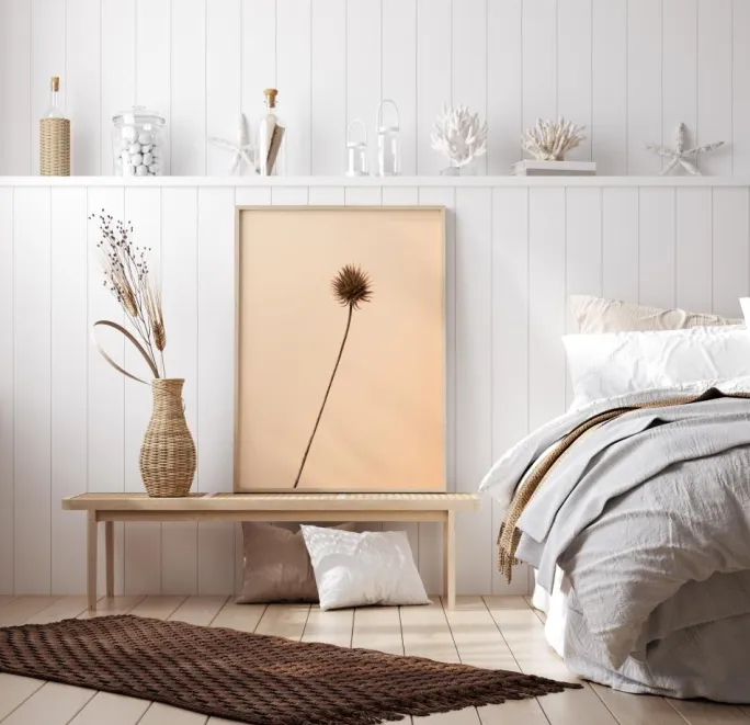 En enkel blomsterplakat med en enkeltstående tidsel mod en bleg himmel. Tag dette print med hjem og bring en smule af naturen indenfor.