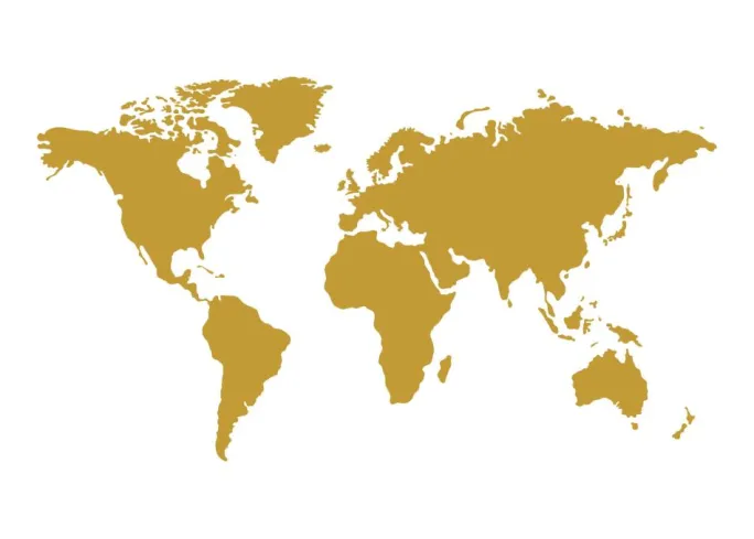 Grafisk tryk for den verdensvante eller globetrotter, der ønsker at prale. En simpel kortillustration med et stiliseret verdenskort i guld mod hvid baggrund. Passer lige så godt ind i alle hjemmets rum. Placer plakaten sammen med andre billeder på temaet rejse eller brug den til at markere alle de steder, du har besøgt rundt om i verden.
