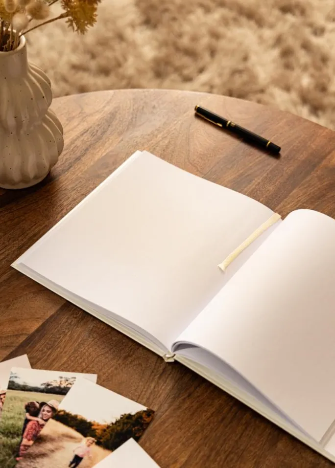 White Love Gästebog er ikke kun et fotoalbum, men også et sted til at samle tanker og følelser fra dine gæster. Lad dem skrive deres hilsner og lykønskninger direkte i albumet for at skabe et minde, der varer livet ud. Dette album er en tidløs skat, som du vil ønske at bladre i igen og igen.