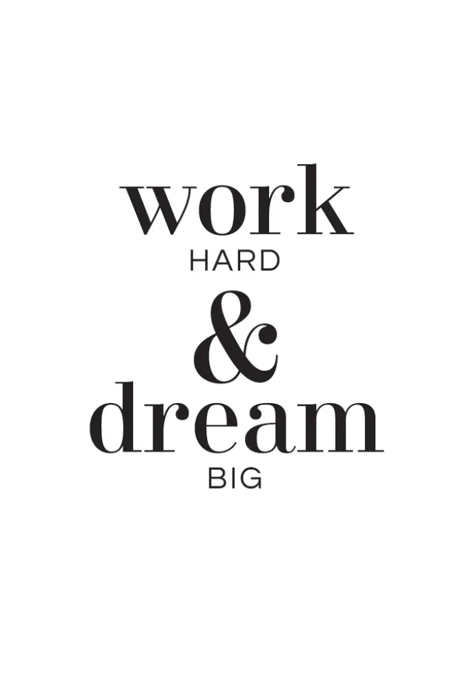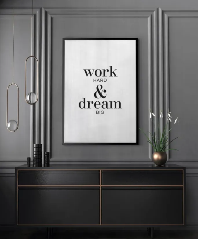 En inspirerende plakat med et stærkt citat til at kickstarte din dag. Work Hard and Dream Big er ord, du bør bruge for at få dig selv i gang hver morgen. Tilføj denne til dit køkken, så du kan blive motiveret med din morgenkaffe.
