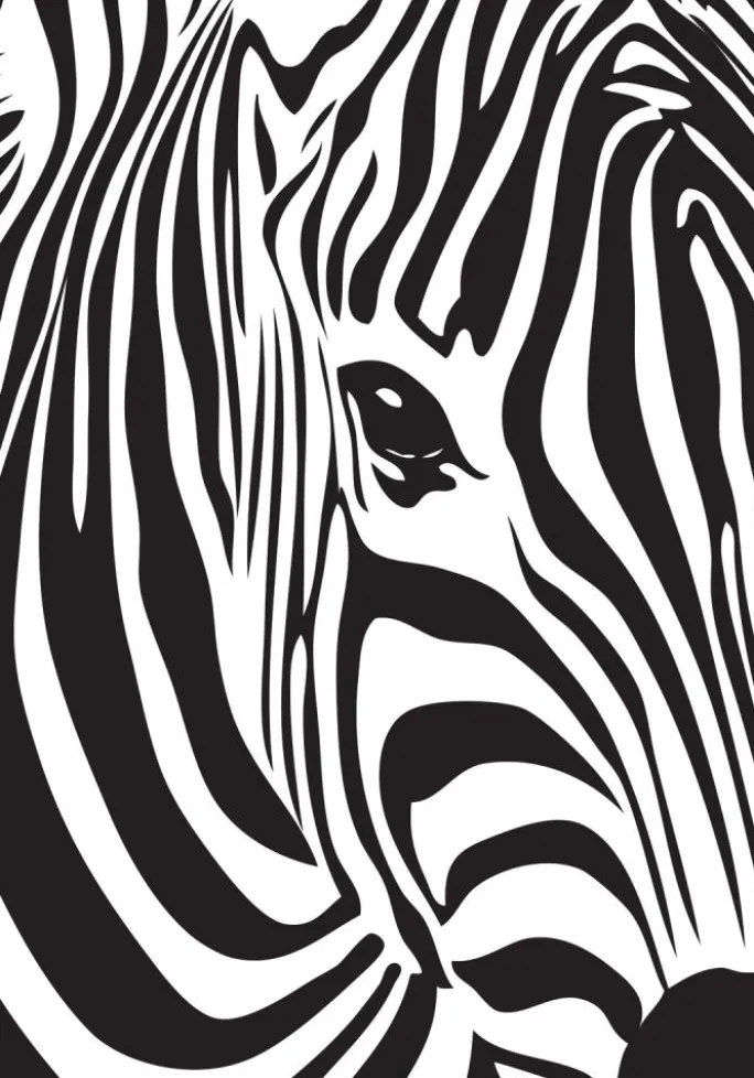 Grafisk plakat med et nærbillede af en zebra. Plakaten passer rigtig godt til at blive hængt op som en del af en billedvæg med vilde dyr, både i form af illustrationer og fotografier, som bliver et blikfang i rummet. Det stilrene grafisk sort-hvide motiv gør, at plakaten gør sig lige så godt i hjemmet som i offentlig miljø. Kombiner posters med en sort billedramme med smal profil for at fremhæve zebramønstret på bedste vis.